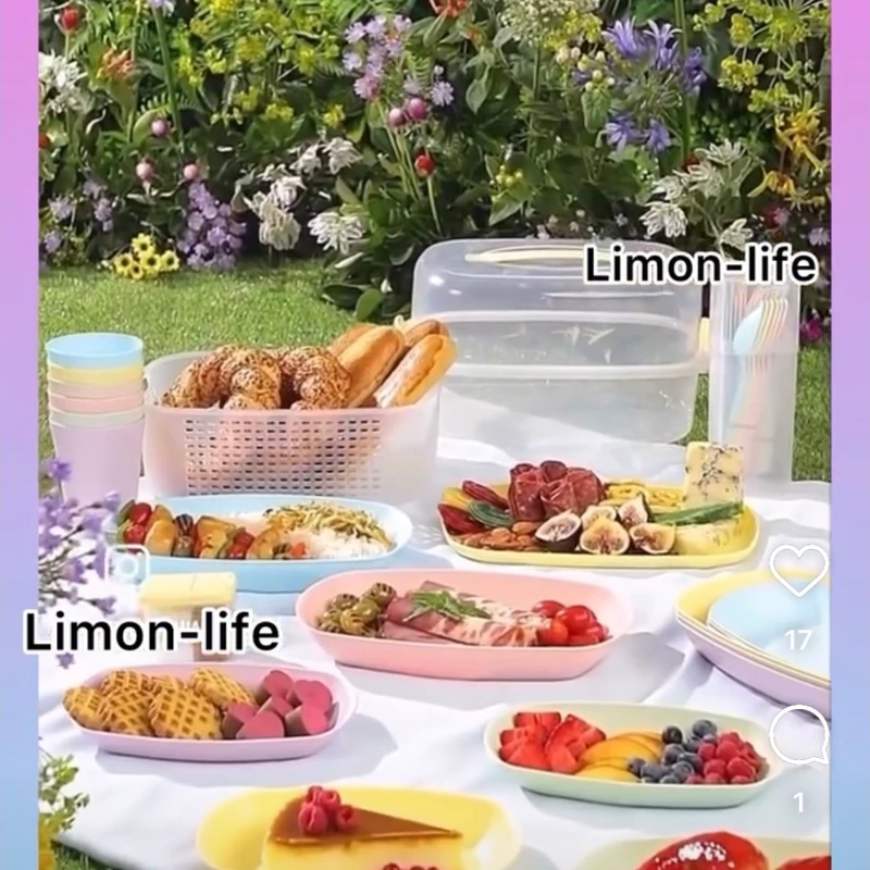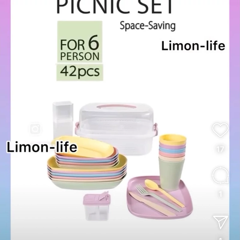 6 عدد بشقاب پلو، 6 عدد پیش دست، 6عدد لیوان، 6عدد قاشق، 6عدد چنگال، 6 عدد کارد،1عدد باکس قاشق ، اعدد نمکپاش دوگانه، 1عدد سبد، 1 عدد باکس بزرگ با دسته حمل