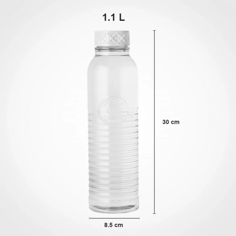 بطری شیشه ای با حجم 1/1 لیتر درب رنگی وانیلی و طوسی و سفیدو کرپ