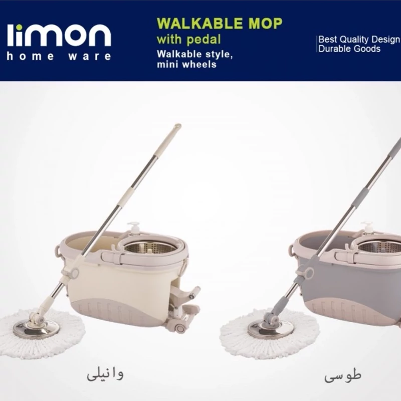 اگر به دنبال یک زمینشوی باکیفیت، بادوام و کاربردی برای نظافت منزل یا محل کار خود هستید، زمین شوی پدالدار لیمون با سبد فلزی یکی از بهترین گزینههای موجود در بازار است. این محصول با طراحی ارگونومیک و عملکرد چرخشی پدال، فرآیند شستوشوی کف را بسیار آسان و سریع میکند.